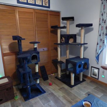 Adding cat houses on to rooms and the patio, these mostly unadoptable cats have found a home with inside and outside enclosed areas. With seven attached cat houses and 5 tunnels, these cats have plenty of room to be cats.